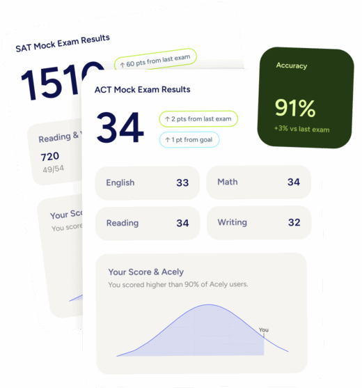 With Acely, you never run out of high-quality practice questions, crafted by experienced educators and test writers and calibrated to the difficulty level you choose.